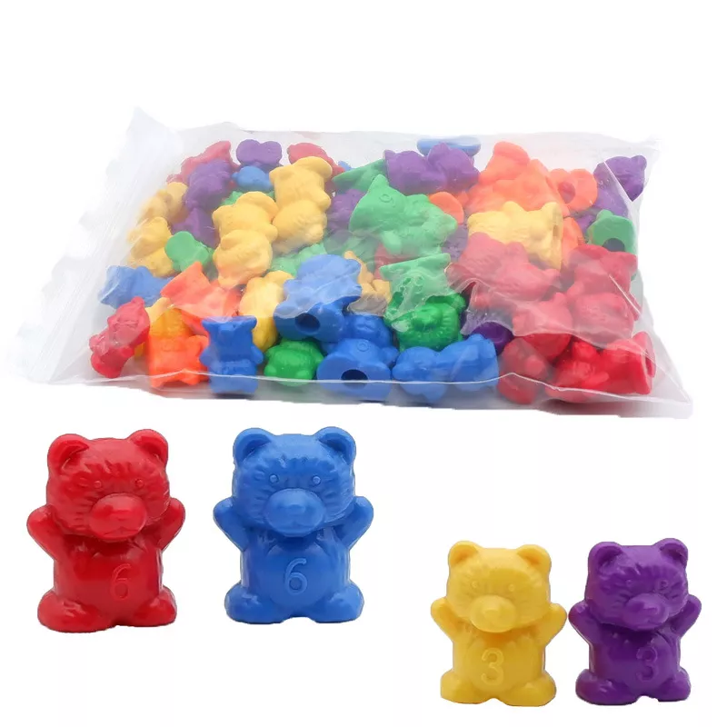 Набір Монтессорі для рахунку і сортування Різнобарвні Ведмедики в двох розмірах (60 шт)
