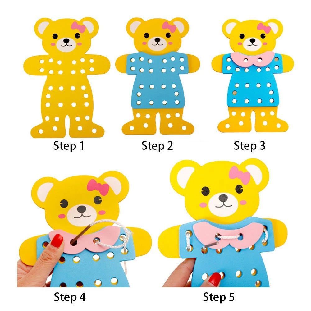 GYBBER&MUMU Bear Dressing Wooden Rope Toys Set