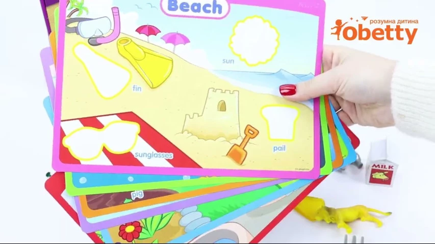 - 6 ігрових карток з різними локаціями: від пляжу до зоопарку