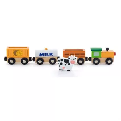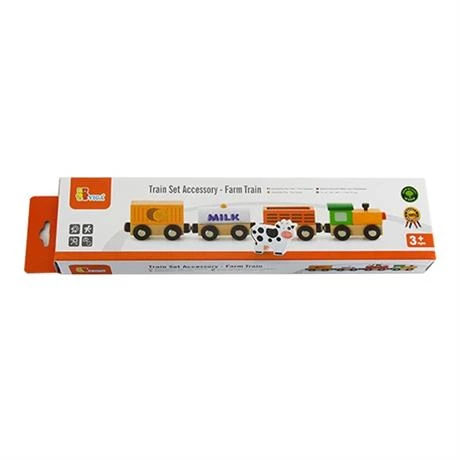 Додаткові аксесуари до Залізниці Viga Toys 56304 для різноманітності гри. У наборі є вантажний поїзд, вагони і фігурка корови.