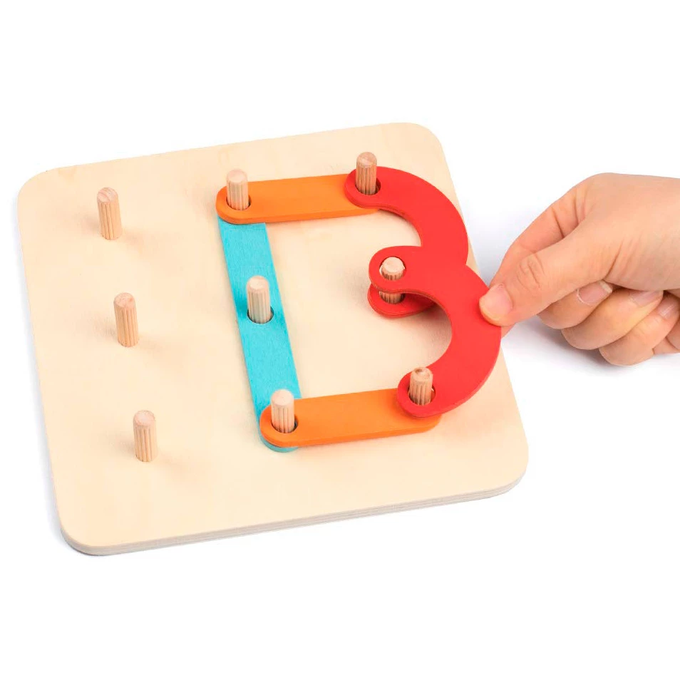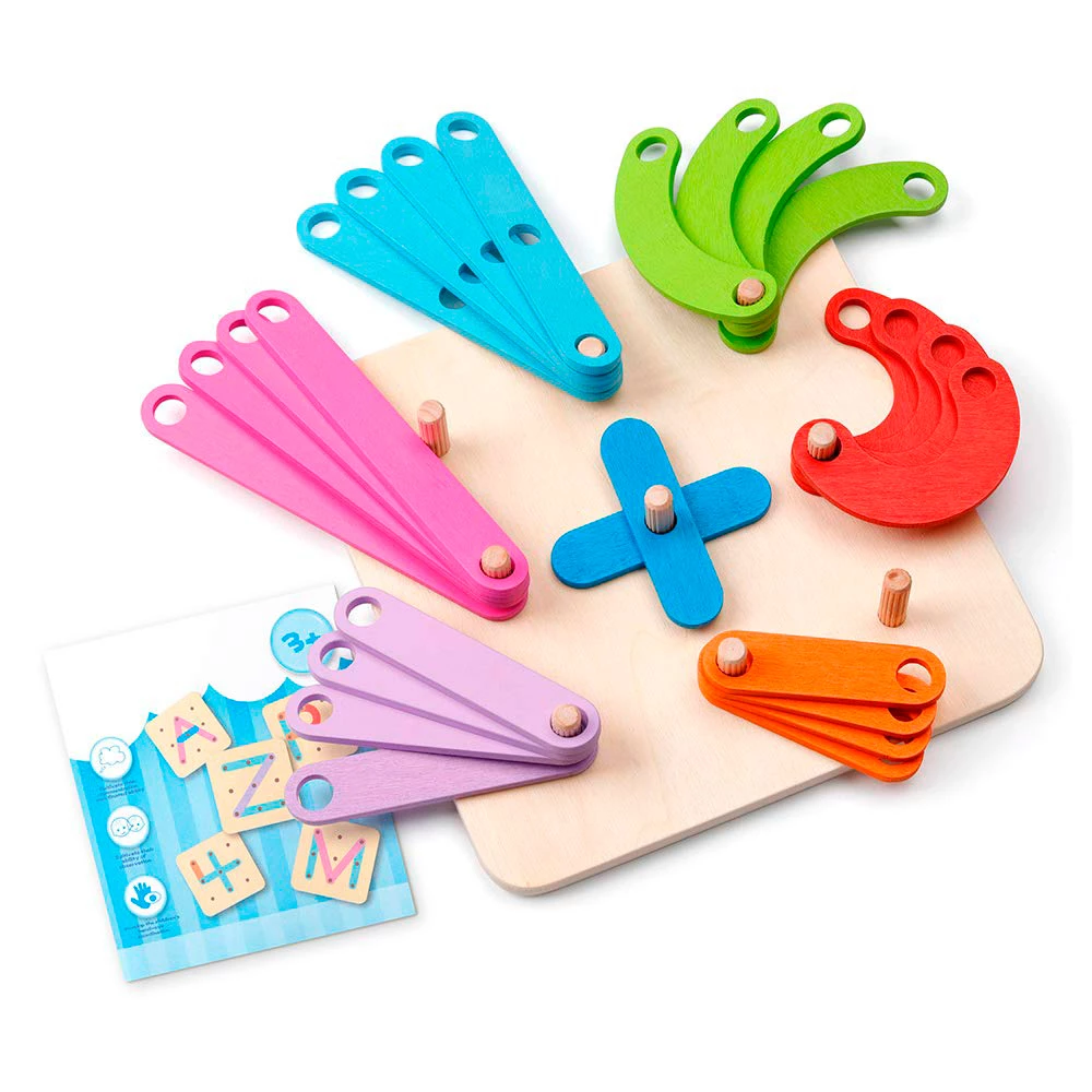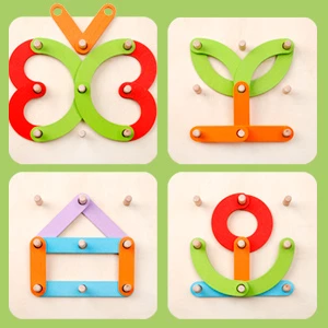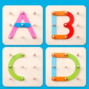 З цим набором можна комбінувати дерев'яні блоки, складаючи їх у формі від A до Z (від 0 до 9), або фігури: стілець, будинок, квітка, метелик, троянда, китайський ієрогліф, математична геометрія і т.д.