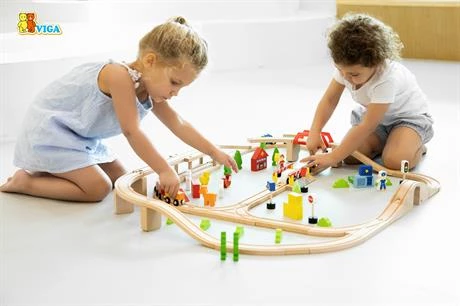 Цікавий розвиває дерев'яний набір в який входять рейки, фігурки людей, потяги, машини, будівлі, дорожні знаки, дерева. Набір легко і швидко збирається з деталей, і дитина надовго зануриться в захоплюючий світ транспорту.