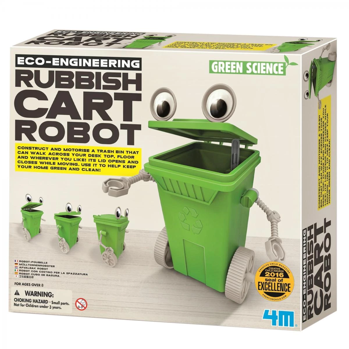 Цей прекрасний науковий набір навчить вашого малюка берегти природу і розвиватися у багатьох напрямках. У наборі є все, що необхідно для того, щоб зібрати цього неймовірного робота, який їздить по підлозі або по столу і клацає кришкою. Плюс є докладна інструкція, яка детально покаже, як це зробити. Цей кумедний робот "сміттєвий бак" зроблений з високоякісного матеріалу і зможе довго радувати вашого малюка і захоплювати в цікавій грі.