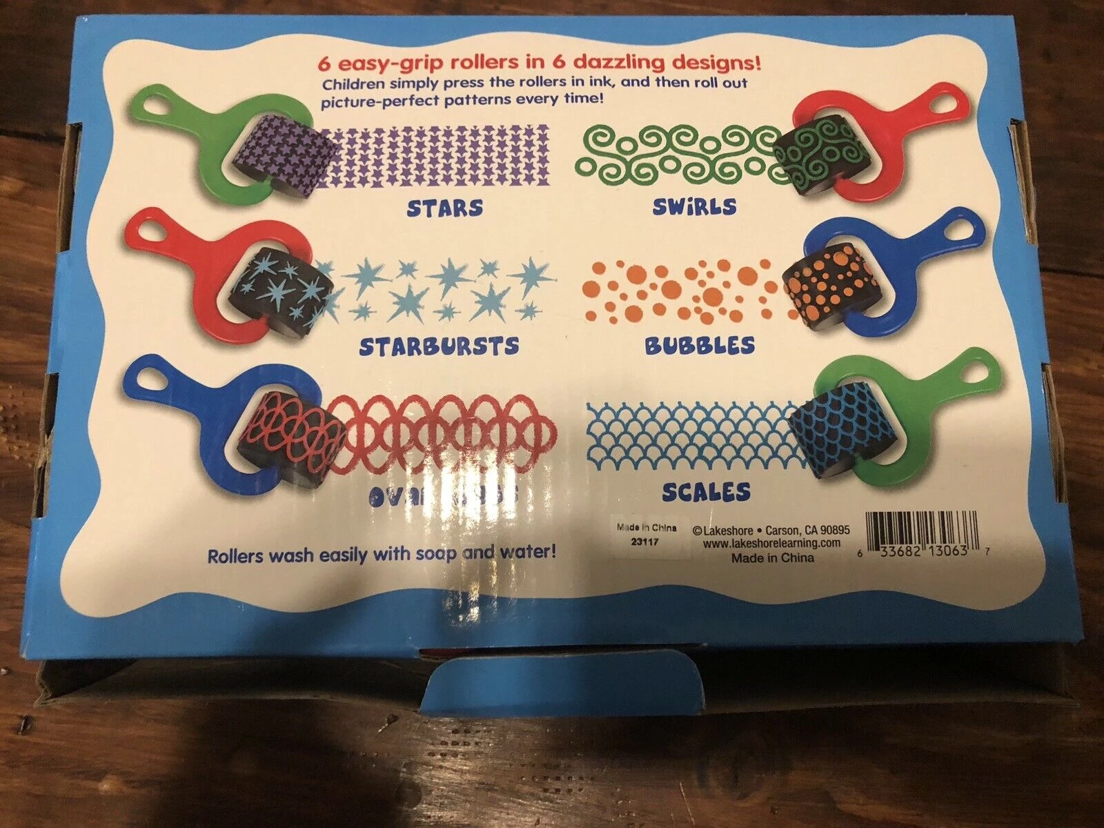 Зручний набір для створення різних візерунків. Діти просто вибирають ролик з потрібним візерунком, макають в фарбу і проводячи по паперу, виходять візерунки: зірочки, камінчики, луска, сіточка і інші. У комплект входять 6 міцних пластикових роликів в 6 різних дизайнах. Кожен з короткою зручною рукояткою, яка дозволяє дітям проявляти творчий підхід не забруднивши руки!