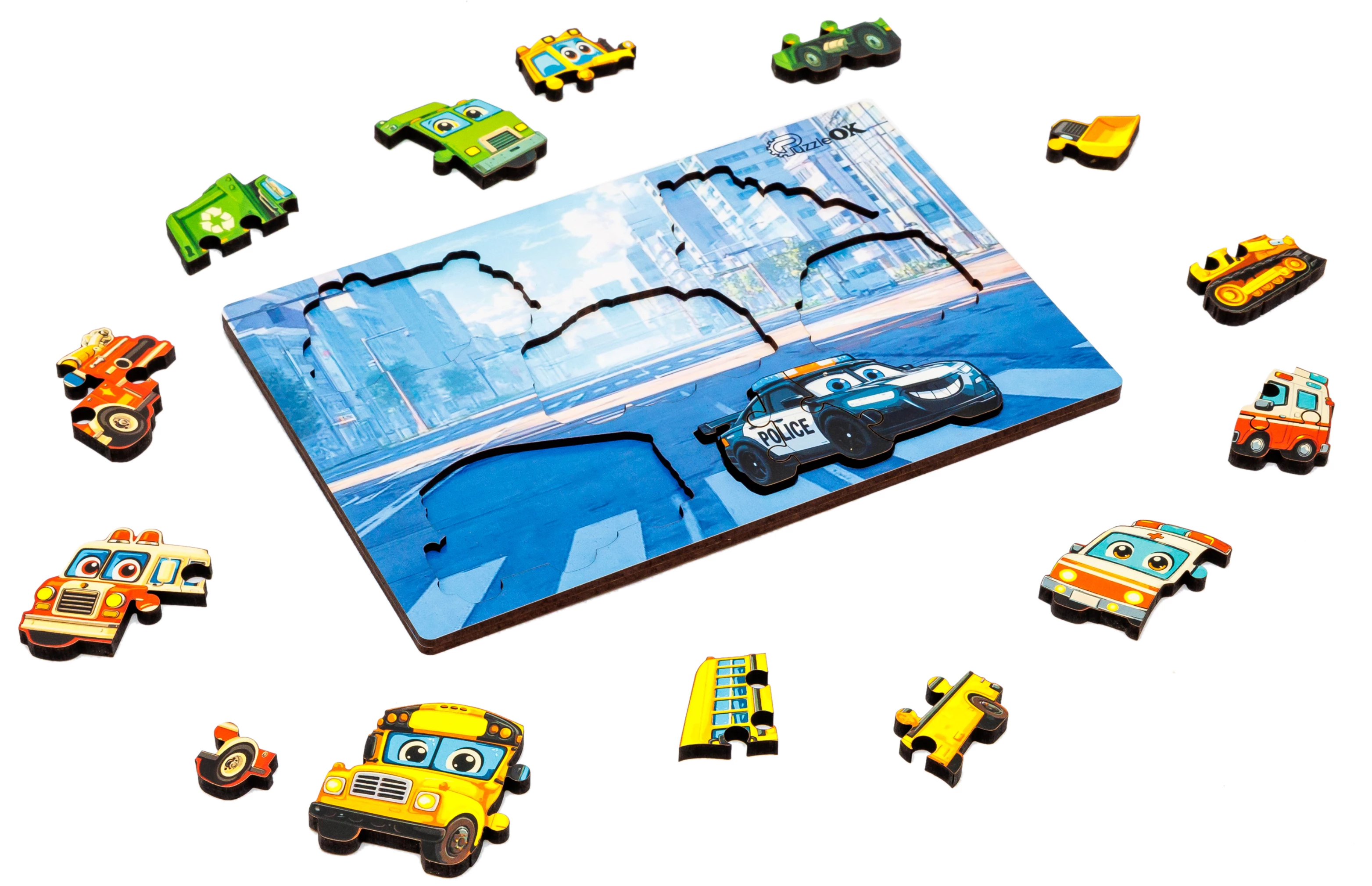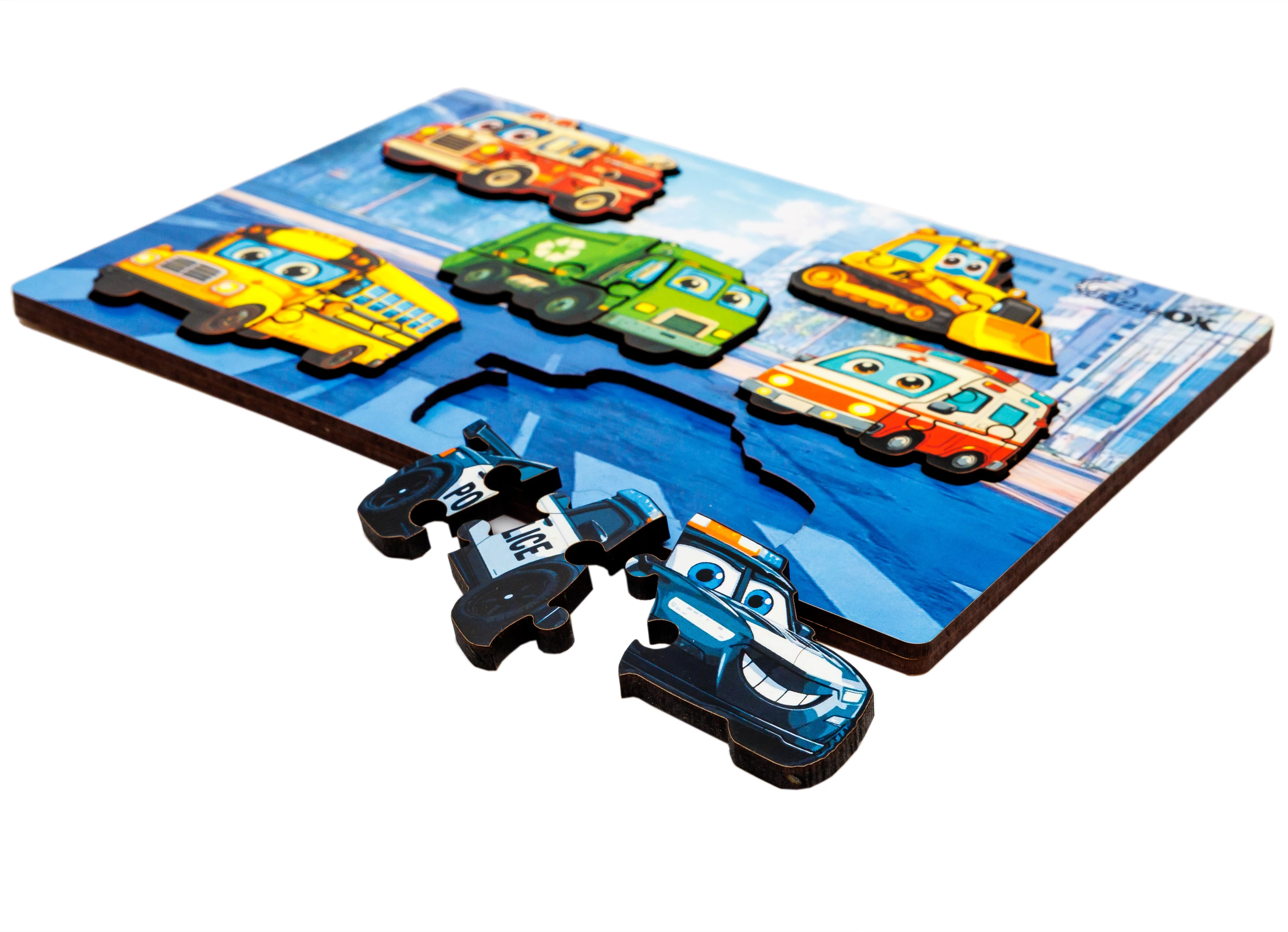 Подаруйте маленьким фантазерам цілий світ захопливих пригод разом з яскравим дерев'яним пазлом «Міський транспорт». Кожна деталь — це не просто частина картинки, а справжній герой з добрими очима: відважна пожежна машина, швидка поліція та працьовитий сміттєвоз вже поспішають на допомогу. Завдяки об'ємним елементам, малюку зручно тримати машинки в долоньках, розвиваючи дрібну моторику і координацію в ігровій формі.