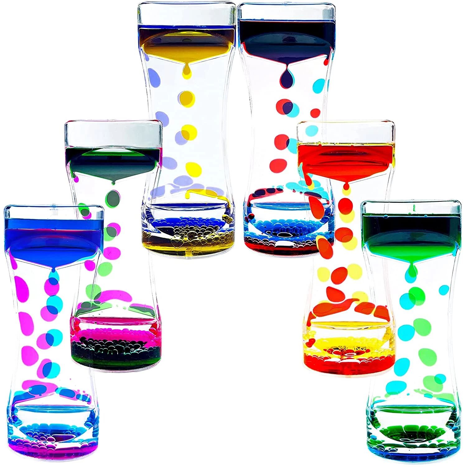 Ця стрес іграшка має дві яскраві кольорові краплі, які повільно стікають, коли перевертаються, майже як лампа лави або пісочний годинник. Це ідеальний спосіб стимулювати ваші візуальні відчуття, коли вам потрібно розслабитися. Усередині кожної іграшки є широка область, яка дозволяє рідини всередині відскакувати, створюючи красиві плавні рухи. Ніколи не зупиняються. Просто переверніться іграшку і краплі знову будуть красиво рухатися всередині. Всім сподобається дивитися на цю захоплюючу іграшку для зняття напруги.