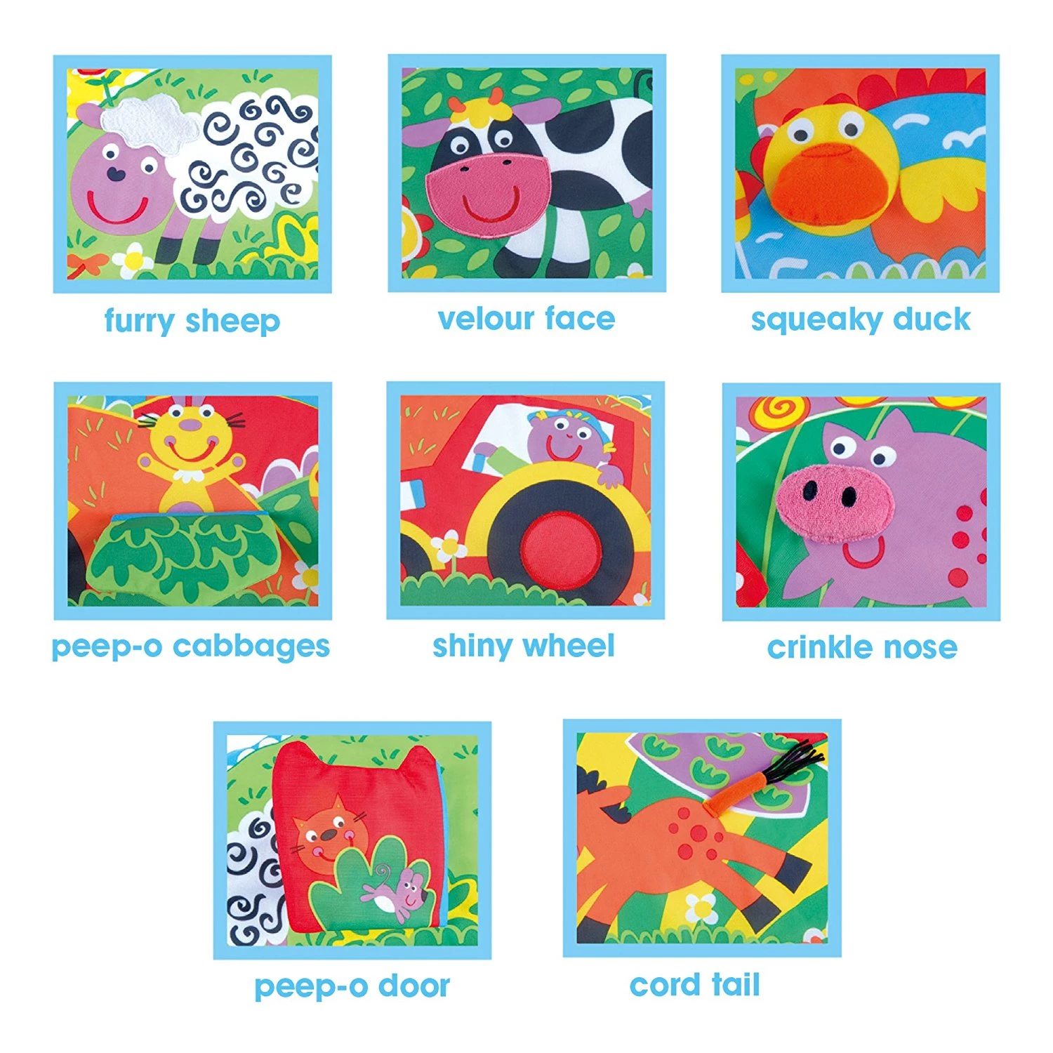 У Playnest є 8 мультисенсорних функцій, що стимулюють дотик, зір і слух. Також є відмінним місцем, де дитина може сидіти, граючи з іншими іграшками. Тканинний чохол має м'який стьобаний центр і придатний для машинного прання.