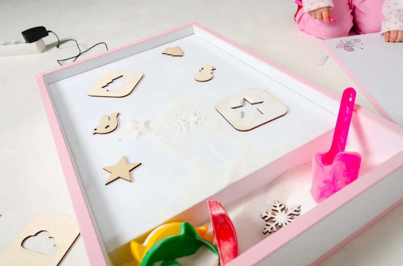 Цей світловий планшет для ігор з піском не потребує представлення. Діти з задоволенням можуть малювати на піску! Колір матеріалу: білий, дуб венге, дуб молочний.