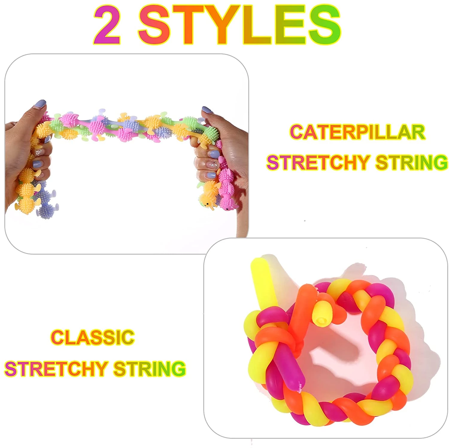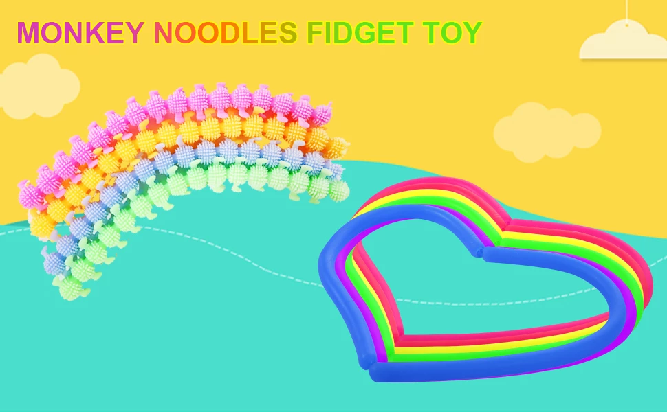 wellvo Sensory Fidget Toys, Monkey Noodle 16 Pack, Classic Monkey Noodle Stretchy String, Monkey Noodles Fidget