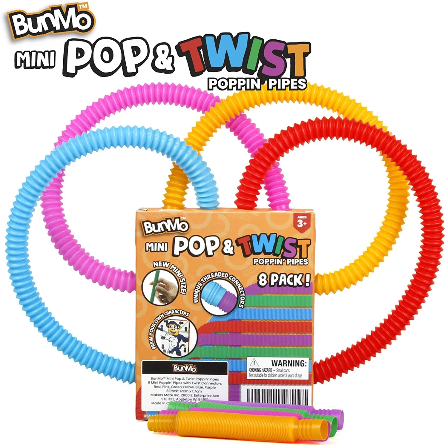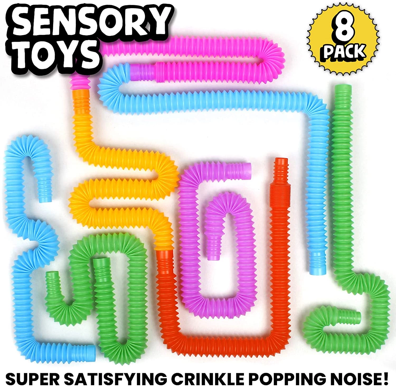 BunMo - Mini Pop Tubes - Fidget Toys for Kids and Sensory Toys for Autistic Children - Occupational Therapy Toys - 8pk