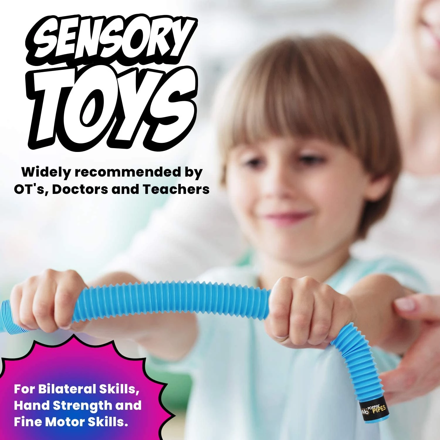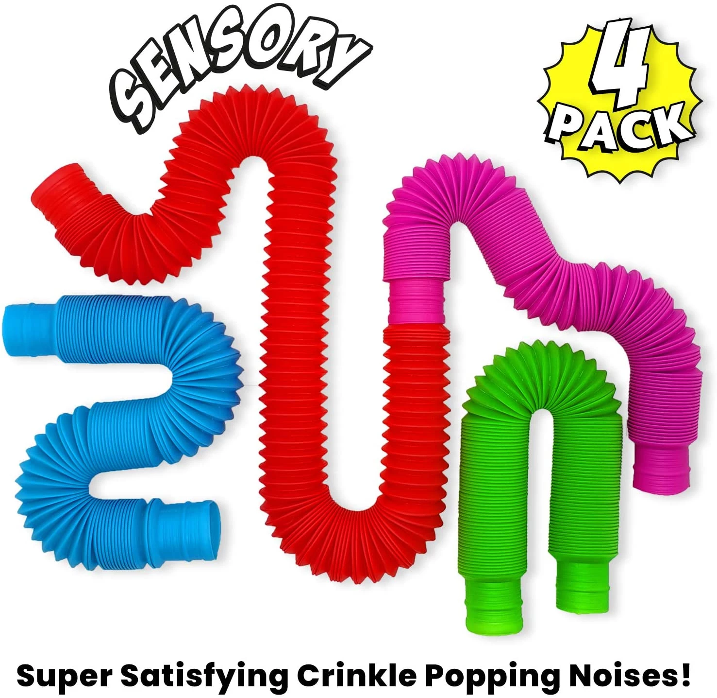 Це забавні і функціональні сенсорні трубки, які хлопають, розтягуються і з'єднуються. Прекрасна іграшка у вигляді труби, яка надихне вашого малюка і пробудить його фантазію. З цією іграшкою можна придумати нескінченну кількість ігор. Вона може підходити для діток з особливими потребами. Цю іграшку можна м'яти, крутити, згинати, з'єднувати з іншими такими ж іграшками. В комплекті 4 труби різних кольорів. Добре розвиває моторику рук, розумові здібності, логіку, кмітливість і багато іншого. Зроблені з безпечного нетоксичного матеріалу.