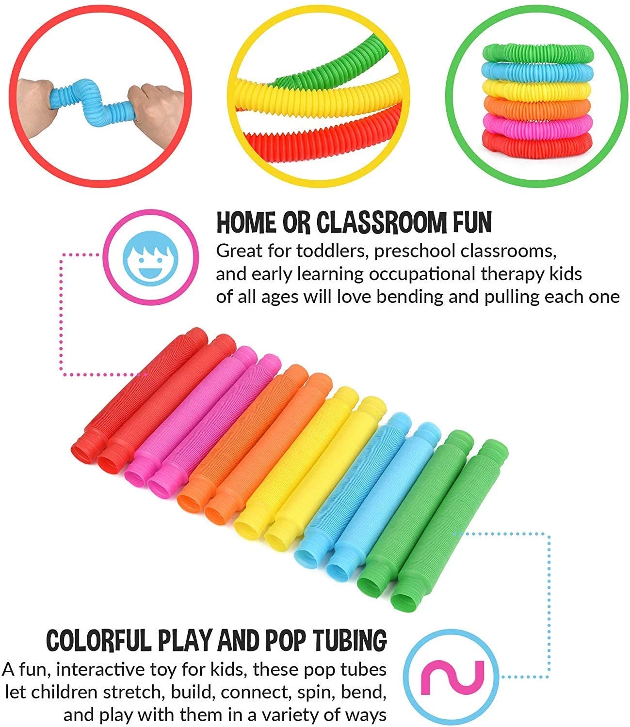 Special Supplies 16-Pack Pull and Stretch Fun Tubes for Kids - Pop, Bend, Build, and Connect Toy