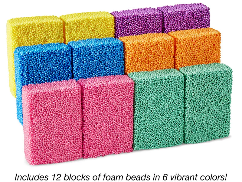 Набір з декількох різнокольорових піноблоків кулькового пластиліну призначений для ліплення. Тисячі маленьких липких намистин, які можна м'яти, стискати і тиснути. Використовуючи блоки легко створити цікаві фігурки, це чудова альтернатива звичайному пластиліну і тісту, так як матеріал не застигає, він залишається липким і його можна використовувати знову і знову. Пластична піна приймає будь-яку форму і робить це досить м'яко, дитині буде нескладно створювати свої шедеври.