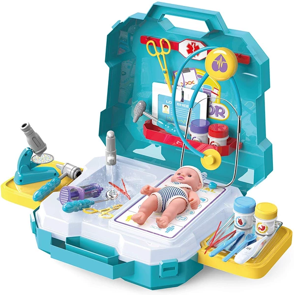 Цей набір — чудовий варіант для гри у лікаря. У комплекті — іграшкові інструменти: стетоскоп, термометр, шприц, окуляри, пінцет, баночки для ліків, а також зручна валіза для зберігання. Підходить для сюжетних ігор, розвитку емпатії, знайомства з медициною та подолання страхів перед візитами до лікаря.