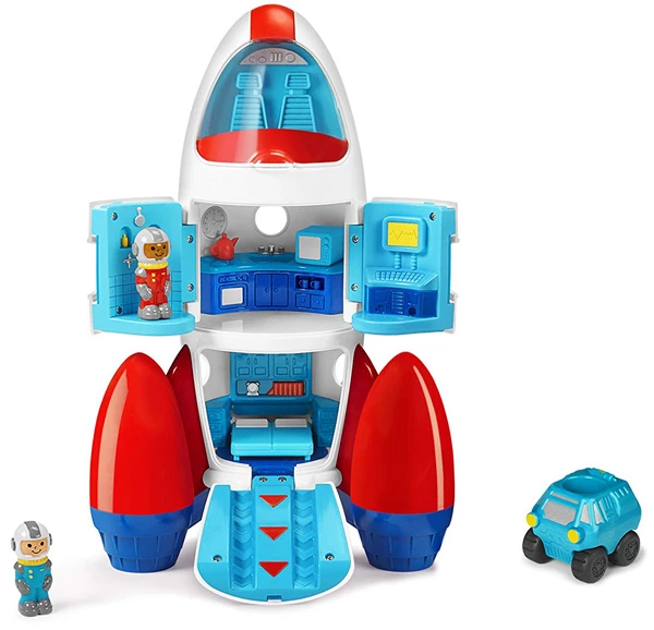 Цей барвистий набір складається з ведмедиків різних кольорів, чашок для сортування, щипців і карток із завданнями. Чудово підходить для вивчення кольорів, базового рахунку, розвитку дрібної моторики, логічного мислення та концентрації. Матеріали безпечні, набір підходить для індивідуальних та групових занять. - Розвиваюча іграшка Ракета з астронавтами від Lakeshore.