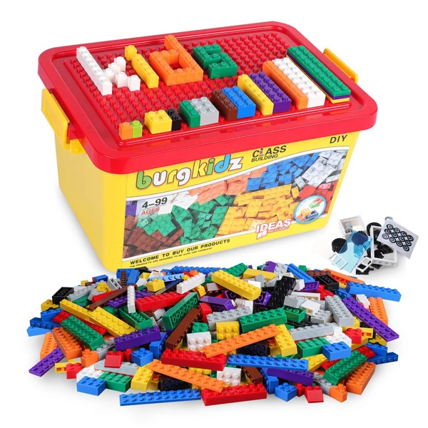 Яскраві пластикові фігурки тварин із різних середовищ (ліс, ферма, джунглі, море) ідеальні для сортування, вивчення назв, створення сюжетів і ігор. Набір розвиває мову, пам’ять, креативність і пізнавальні навички. Може використовуватись у навчальних цілях в садках і вдома. - Логічний будівельний набір Лего (500 шт) від Burgkidz.