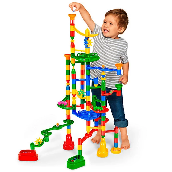 Веселий джампер з ручками і звуковим ефектом кожного стрибка допоможе дитині активно рухатися, зміцнювати ноги, тренувати рівновагу й координацію. М’яка частина не шкодить підлозі, а сам пристрій витримує інтенсивні навантаження. Ідеально для прогулянок на вулиці та занять у залі. - Розвиваючий конструктор Лабіринт з кулькою від Lakeshore.
