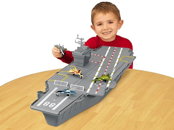 Ігровий набір включає великий авіаносець з інтерактивними елементами та чотири літаки, які можна запускати вручну. Розвиває дрібну моторику, логіку, сюжетно-рольову гру. Ідеальний для знайомства з технікою та темою транспорту, армії, авіації.