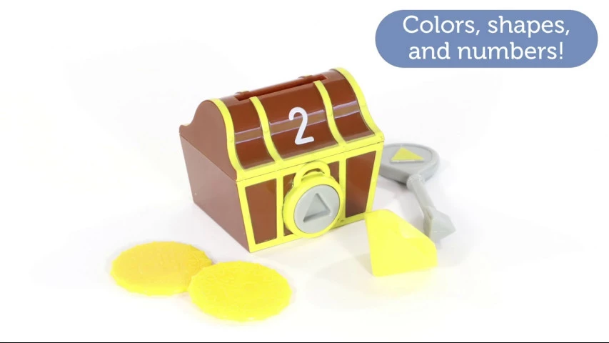Набір також включає в себе 15 кольорових монет для сортування і порівняння. Відсортуйте скарби піратів за кольором, зіставте монети з іншими скарбами або просто киньте їх в прорізи у верхній частині скрині.