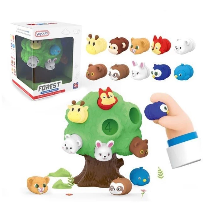 Пропонуємо вашій увазі веселий логічний сортер. Ця чудова іграшка перенесе маленьких фантазерів у лісовий світ, населений милими звірятками. Завдання дитини — знайти правильні отвори в дереві і поєднати їх з фігурками тварин. Гра обіцяє бути корисною та цікавою! Об'ємні звірятка з приємною текстурою зручні для маленьких дитячих ручок, вони мотивують дитину грати.