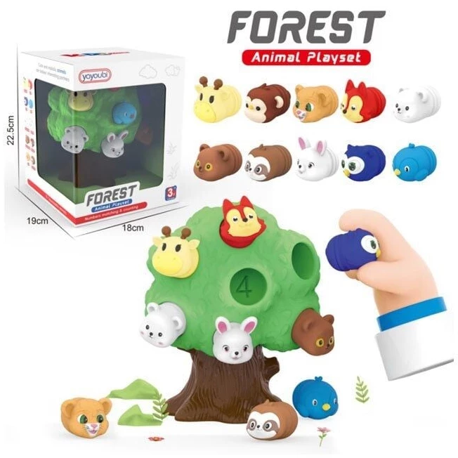 Яскрава розвивальна іграшка являє собою пластикове дерево висотою 17 см з отворами для фігурок. Набір включає 10 м'яких фігурок тварин та елементи з цифрами. Іграшка призначена діткам від 3 років. Сортер виконаний у стильному дизайні та насичених кольорах. Відмінний подарунок для розвитку та щоденних розваг.