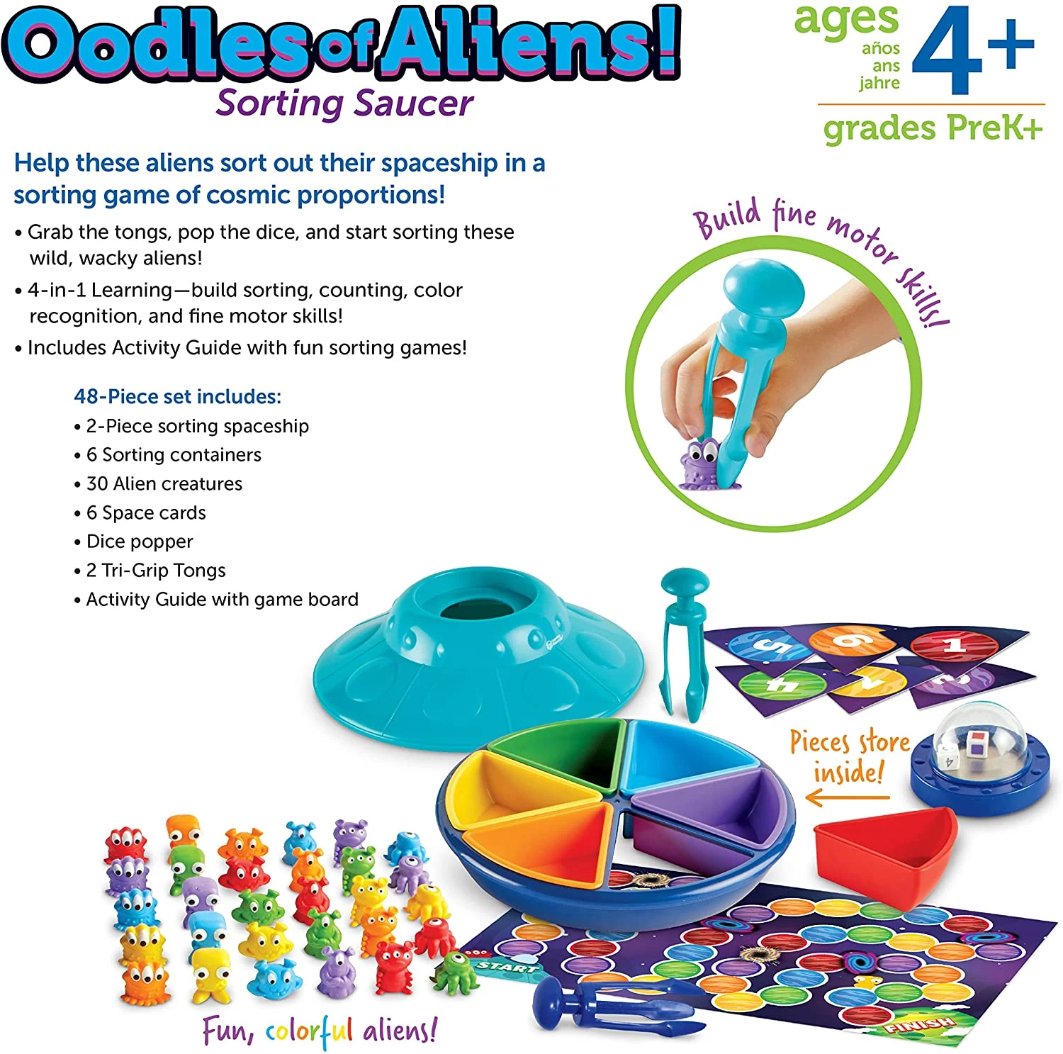 Learning Resources Oodles of Aliens Sorting Saucer, Fine Motor Skills, Counting and Sorting Toys