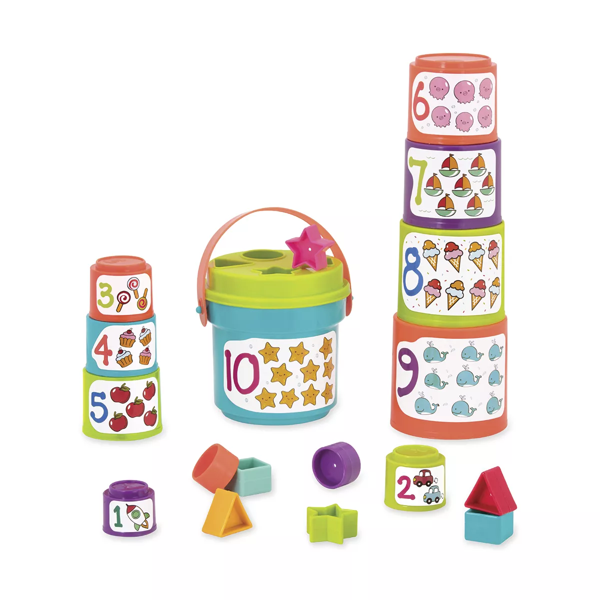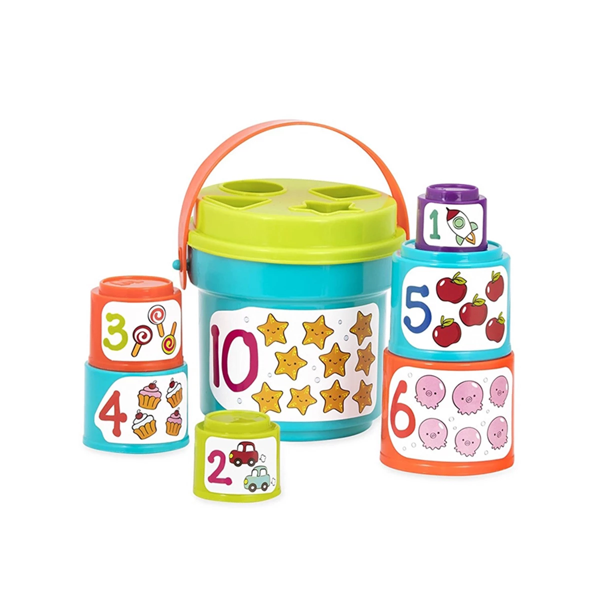 Відео Розвиваючий набір сортер пірамідка Відерця (10 шт) від Battat
