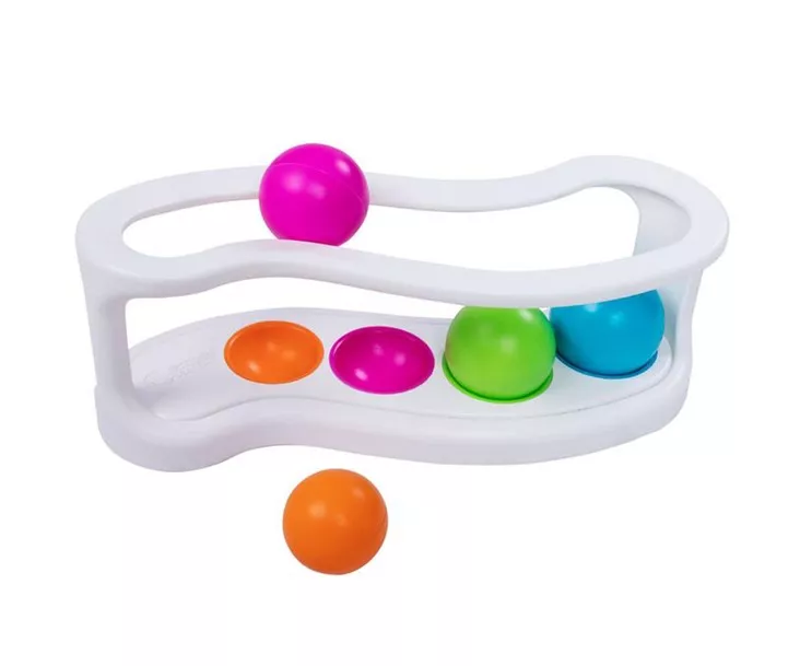 Захоплююча іграшка для малюків. Дитина пускає кульку по доріжці сортера, поки кулька сама не провалиться в лунку свого кольору. Під час гри, у дитини розвивається дрібна моторика і поліпшується розуміння розміру і кольору. Кулька зручна і легко поміщається в дитячих руках.