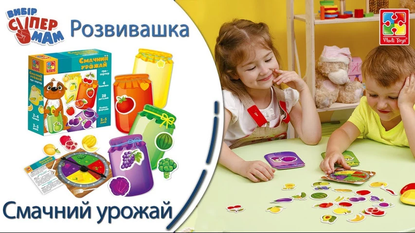 Сортуйте овочі та фрукти, а також вивчайте кольори в процесі гри. Для жовтих плодів призначена жовта баночка, для червоних – червона тощо.