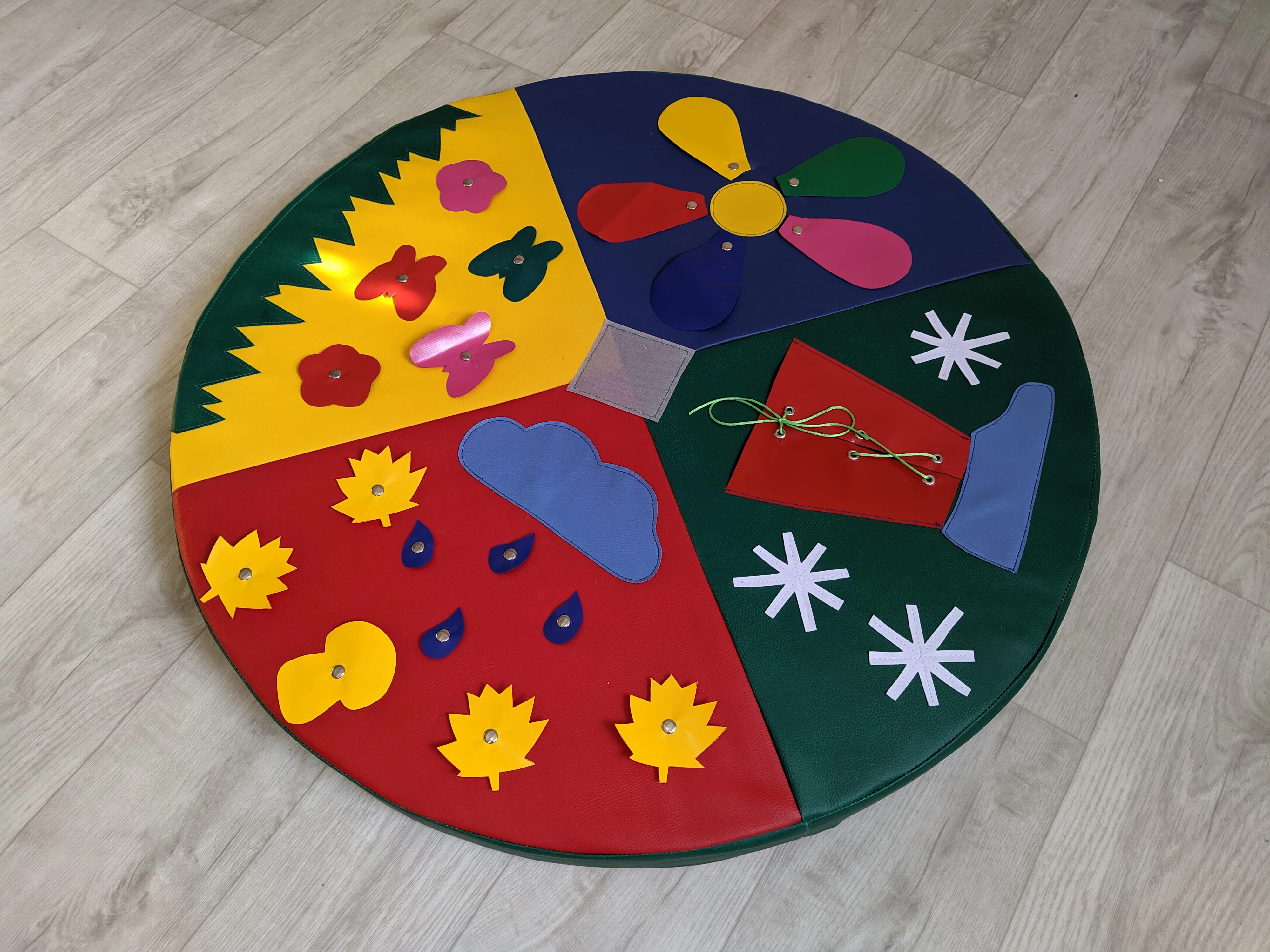 За допомогою цього дидактичного модуля ваш малюк в ігровій обстановці навчиться розрізняти пори року. На модулі розміщені 4 сектори, з аплікаційними вставками, відповідними кожного сезону. Ця гра надовго займе вашого непосиду. Такого помічника можна використовувати в домашніх умовах, в дитячих садах, розвиваючих школах і центрах. Догляд за модулем дуже простий, його легко очищати і дезінфікувати.