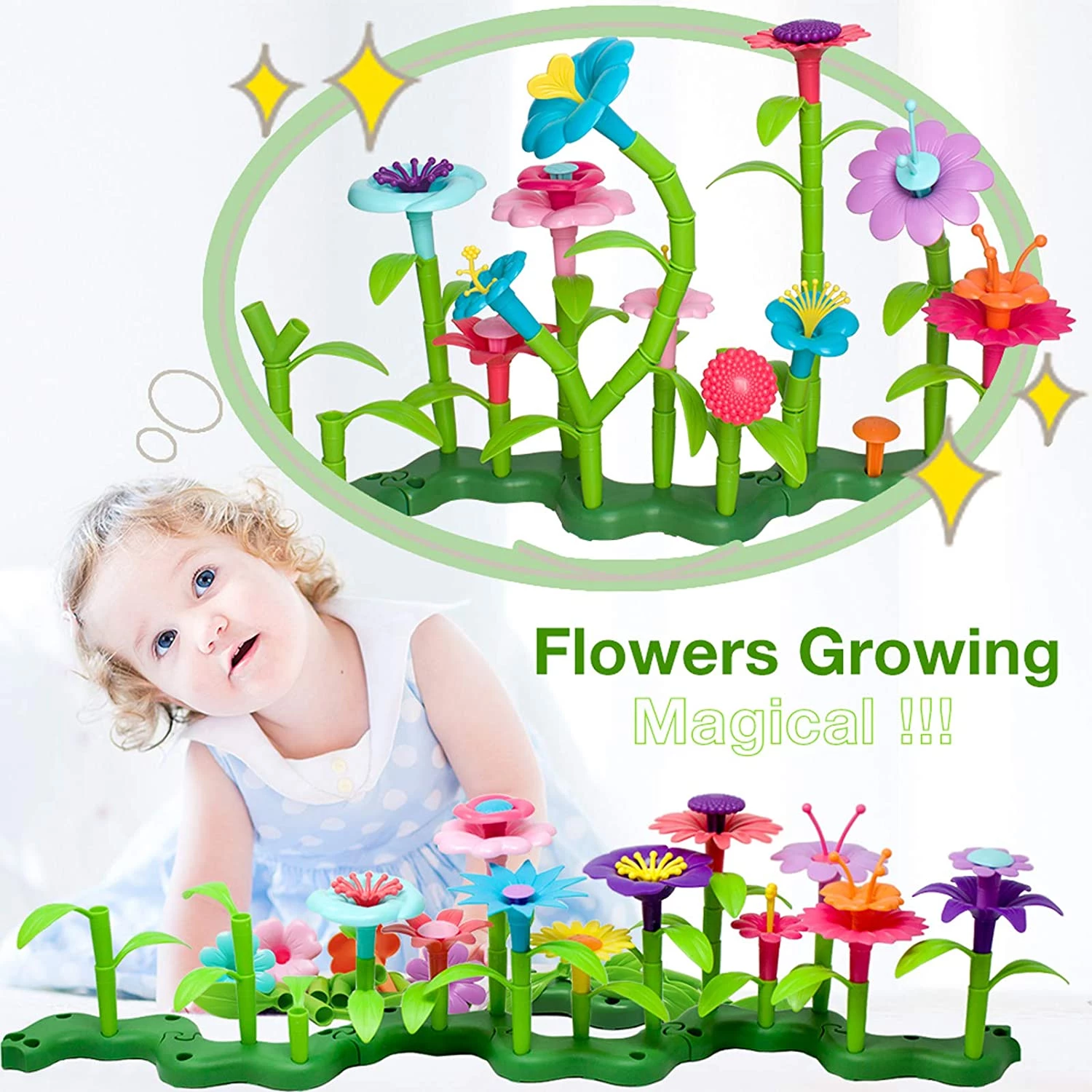 BIRANCO. Flower Garden Building Set - Grow up! Fun Stacking Toys for Toddlers and Kids