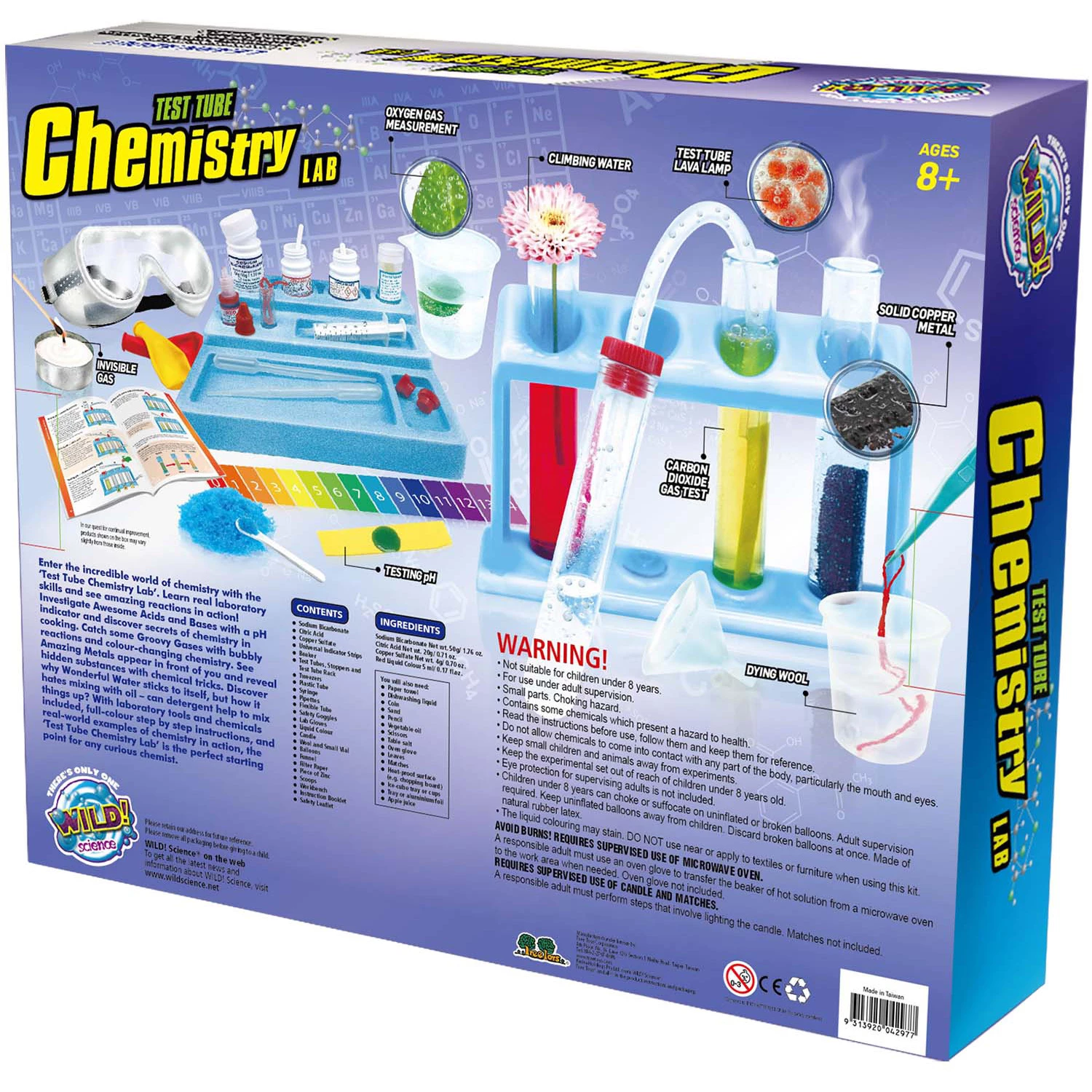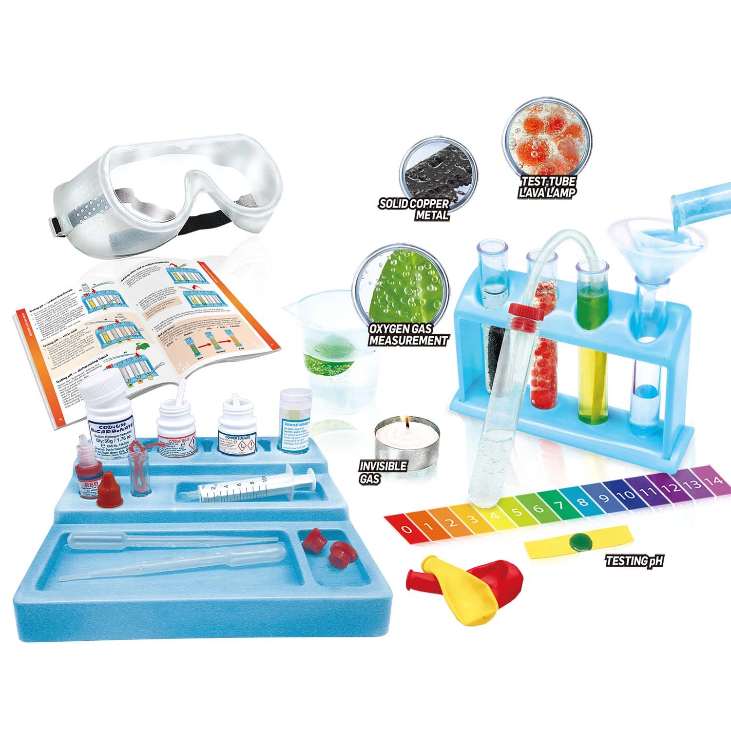 Проводьте експерименти своїми руками! Хімія більше не буде складною і незрозумілою наукою, адже даний набір дозволяє самостійно проводити досліди. Наприклад, діти зможуть створити лавову лампу, твердий мідний метал, альпіністська вода, пофарбована шерсть, невидимий газ і багато іншого. Наука повинна бути веселою і легкою для розуміння. Ось чому кожен крок в буклеті включає в себе ілюстрацію, щоб показати, що саме потрібно зробити!