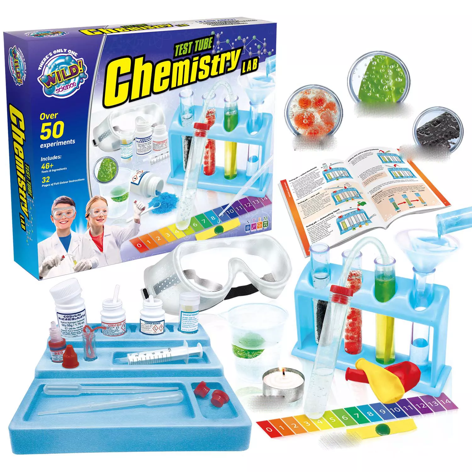 WILD! Science - WS90XL Test Tube Chemistry Lab - 50+ Fun Experiments and Reactions for Kids
