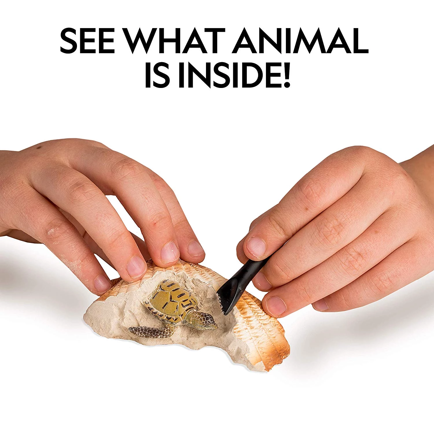 Набір для розкопок морських мешканців - захоплююче заняття для молодих вчених. Це також відмінний набір, який можна використовувати в школі або робити розкопки з друзями. Черепашок вистачить на 12 осіб. Потрібно розкопати в ракушці фігурку морської тварини і за допомогою брошури з набору, дізнатися цікаві наукові факти про нього.