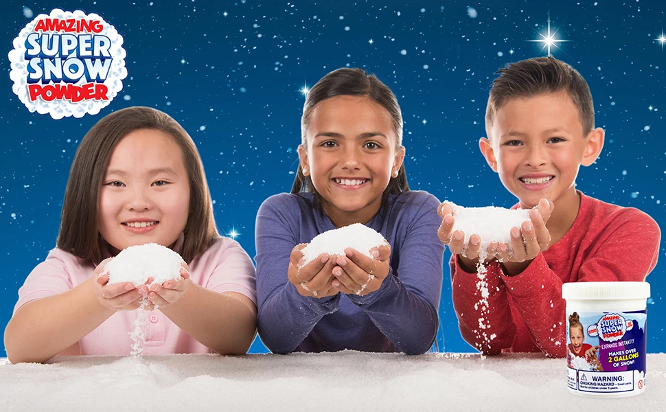 Це штучна снігова пудра, яка за секунди перетворюється на білу пухнасту масу, яка виглядає як справжній сніг.