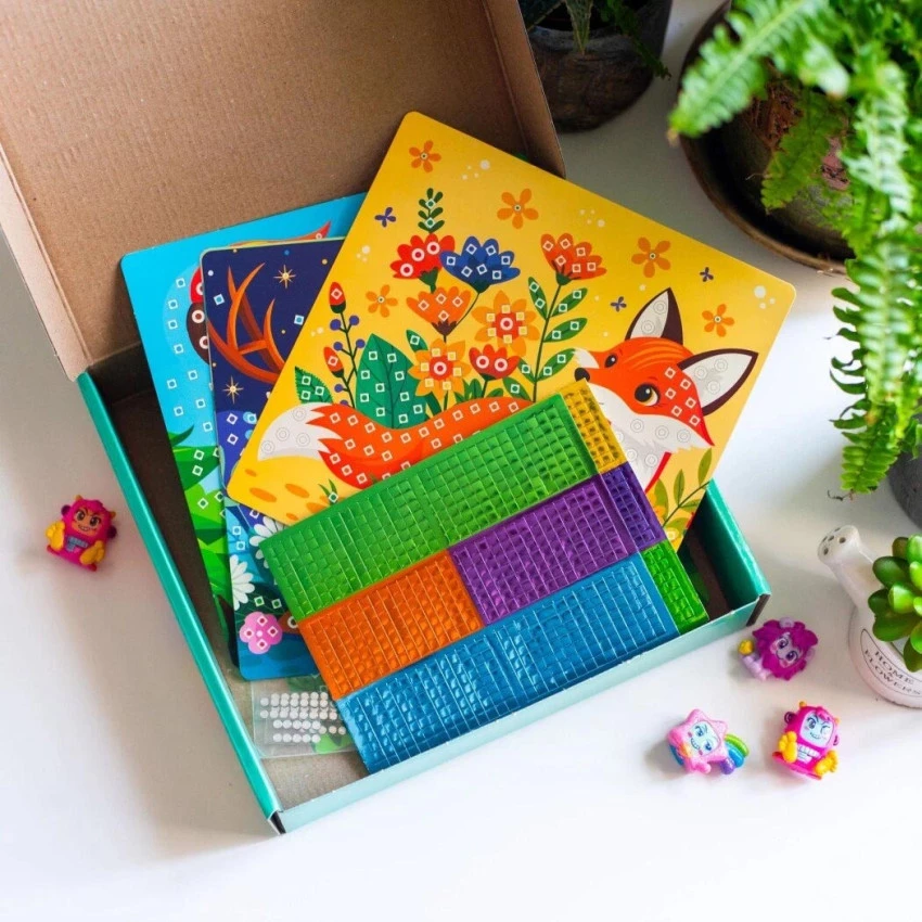 Кожна схема, що входить до набору, має докладні умовні позначення, які допоможуть дитині легко орієнтуватися та насолоджуватися декоруванням. Створення мозаїчних картинок сприяє розвитку важливих умінь та навичок. Створювати мозаїки надзвичайно просто: