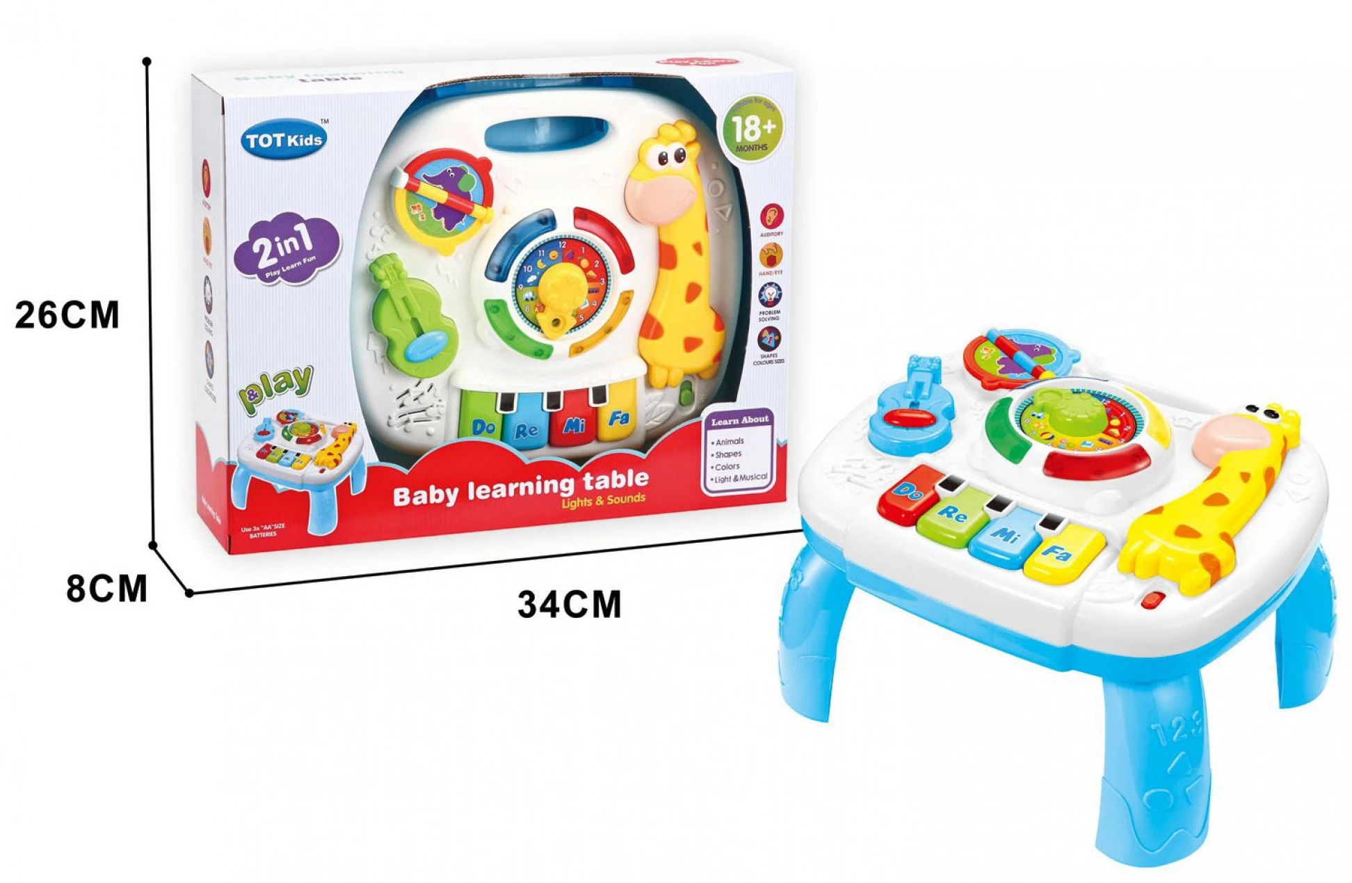 Така іграшка розвиває музичний слух, почуття ритму, тренує моторні навички. Дане пристосування поєднує функції ігрового столика і ігрової панелі (якщо зняти ніжки). Цікава іграшка, оснащена світловими та звуковими ефектами, а також різноманітними ігровими елементами, що розвивають, розважить бешкетників і подарує найяскравіші, позитивні емоції.