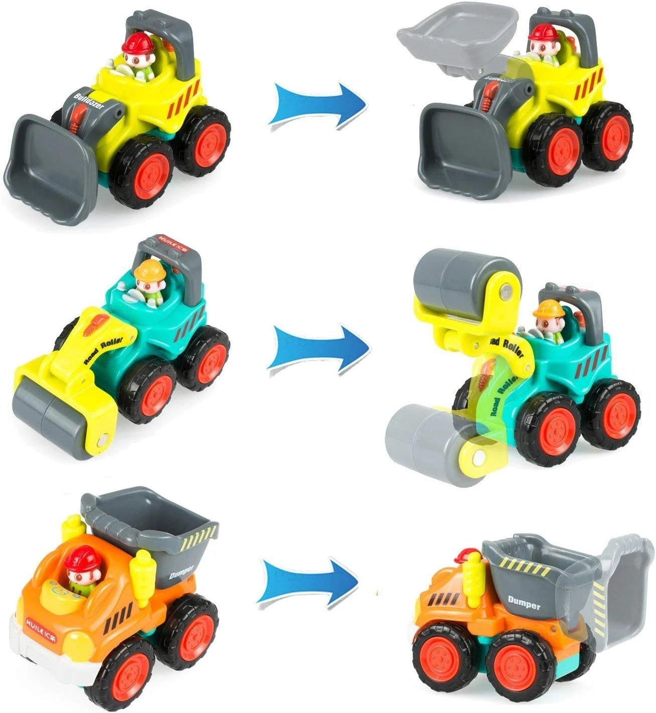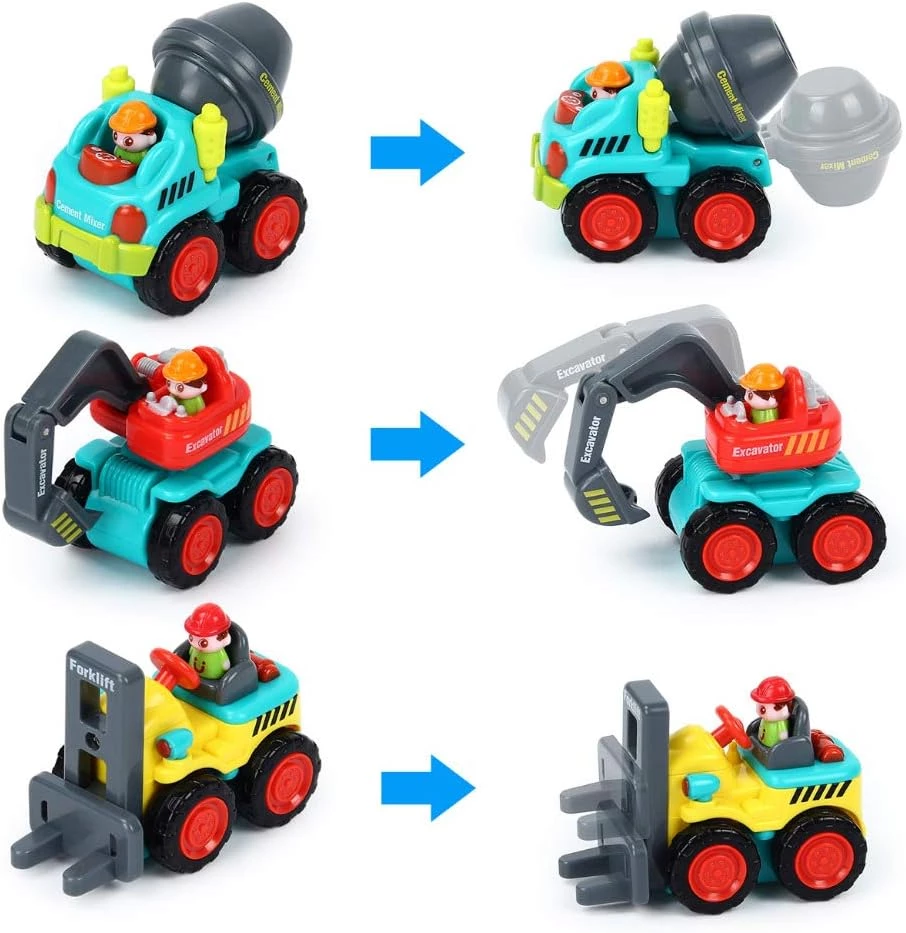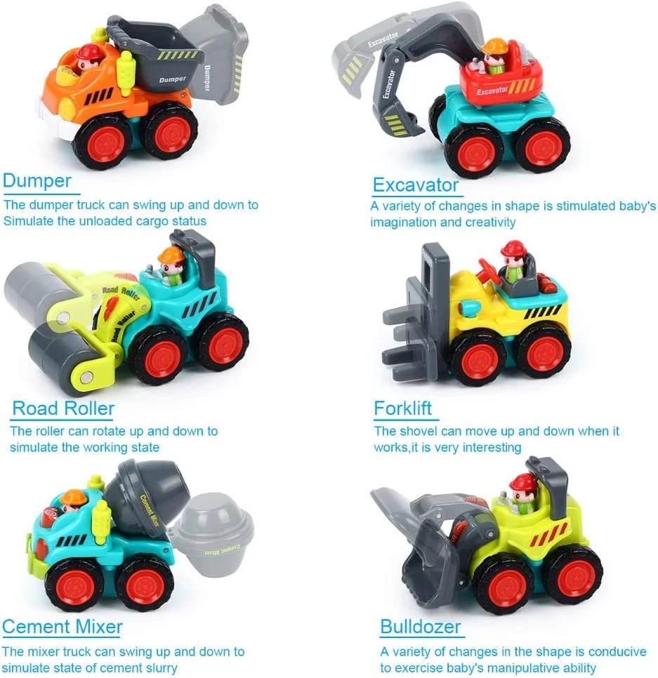 Ігровий набір включає 6 моделей будівельної техніки: бульдозер, екскаватор, самоскид, цементовоз, навантажувач та асфальтоукладач. Міні-моделі виглядають зовсім як справжні, тільки менших розмірів! Транспортні засоби реалістично спроектовані. Елементи машинок рухливі.