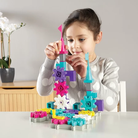 Будівельний комплект Castle Gears дозволяє маленьким інженерам створювати майже нескінченне поєднання замків, які рухаються за допомогою шестерень. Зубчасті частини легко з'єднуються, і вся будова обертається. Допомагає розвивати STEM і моторні навички. Деталі сумісні з усіма Gears! наборами.