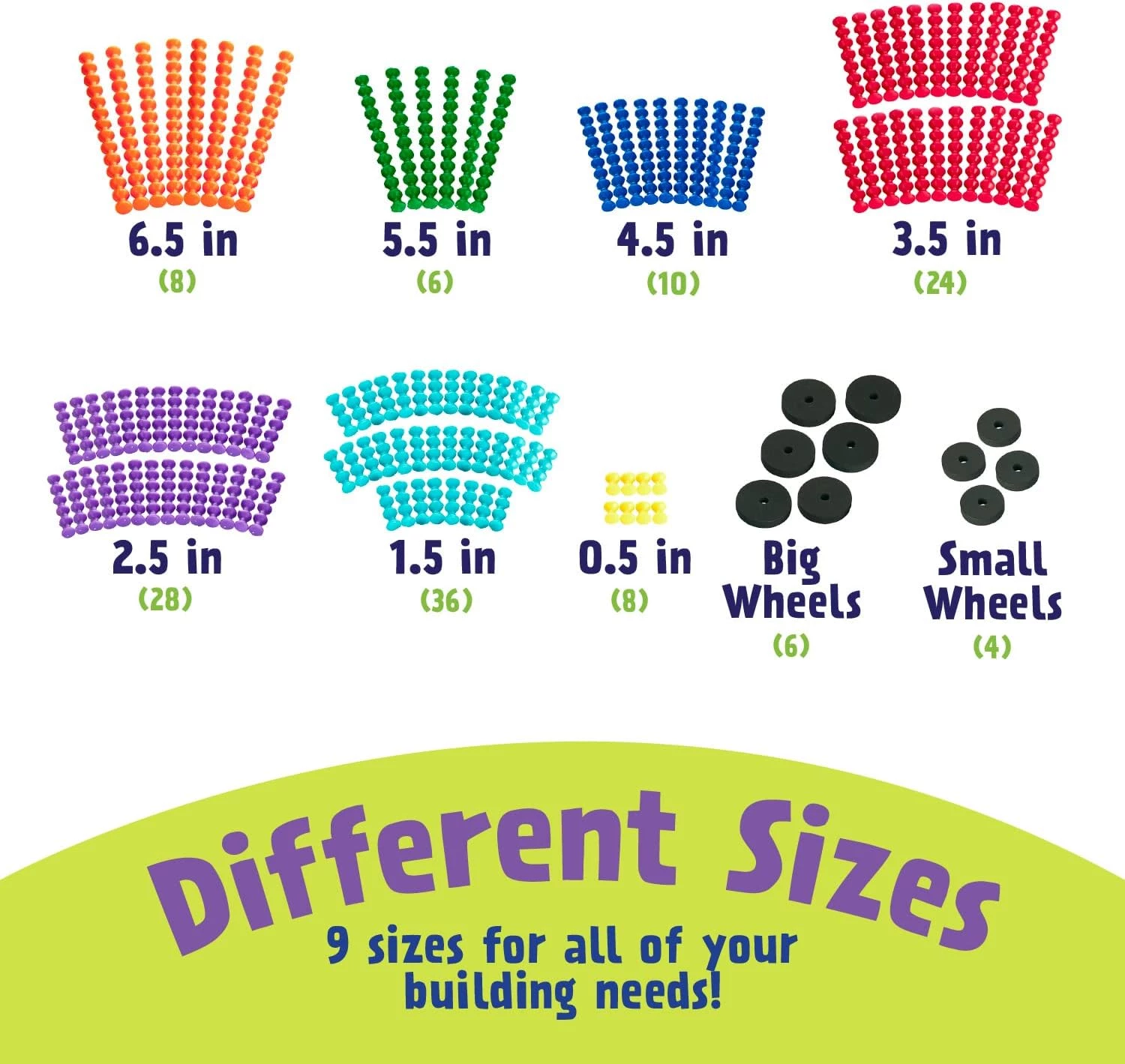 Різна довжина у кожного кольору детальки, тому легко зрозуміти, як побудована кожна модель. Набір заохочують навчання, креативність, соціальну взаємодію.