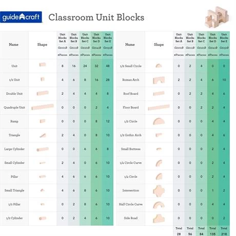 З цим набором, діти можуть вивчати геометричні форми і інженерні конструкції. Блоки різних форм зроблені з нефарбованого шліфованого міцного каучукового дерева. З них можна створювати будівлі, мости та інші конструкції.