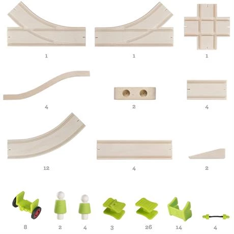 Набір сподобається всім юним будівельникам. Пластикові елементи зручно і просто скріплюються і можна будувати різні дороги, мости і тунелі. А коли будівництво закінчено, дерев'яні машинки з м'якими пластиковими колесами легко будуть ковзати по побудованій дорозі з бука.