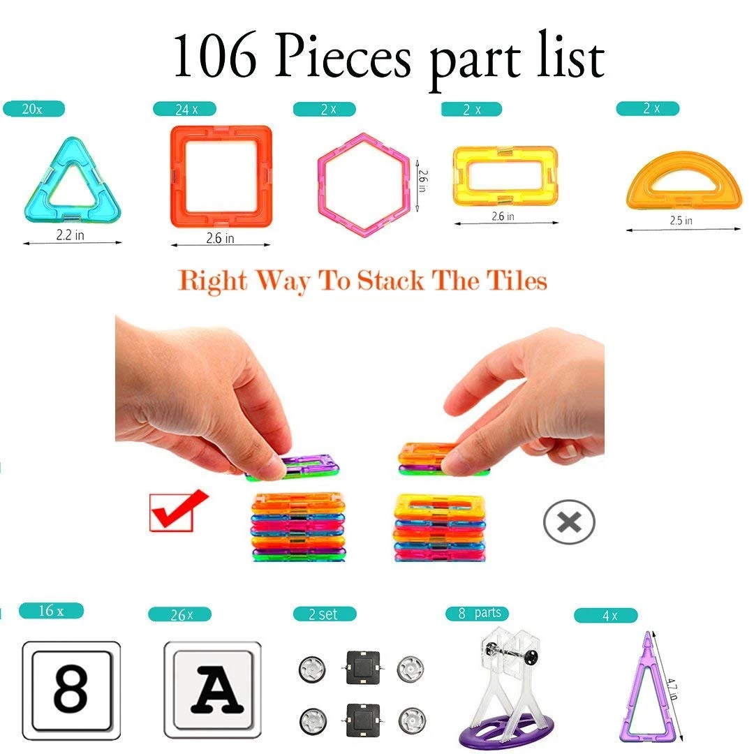 dreambuilderToy 106 PCS Magnetic Tiles Set