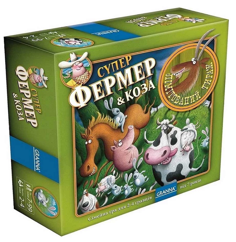 Затишно проводите вечора з компанією, граючи в настільну гру "Суперфермер і коза". Гра розрахована на 2-4 гравців.