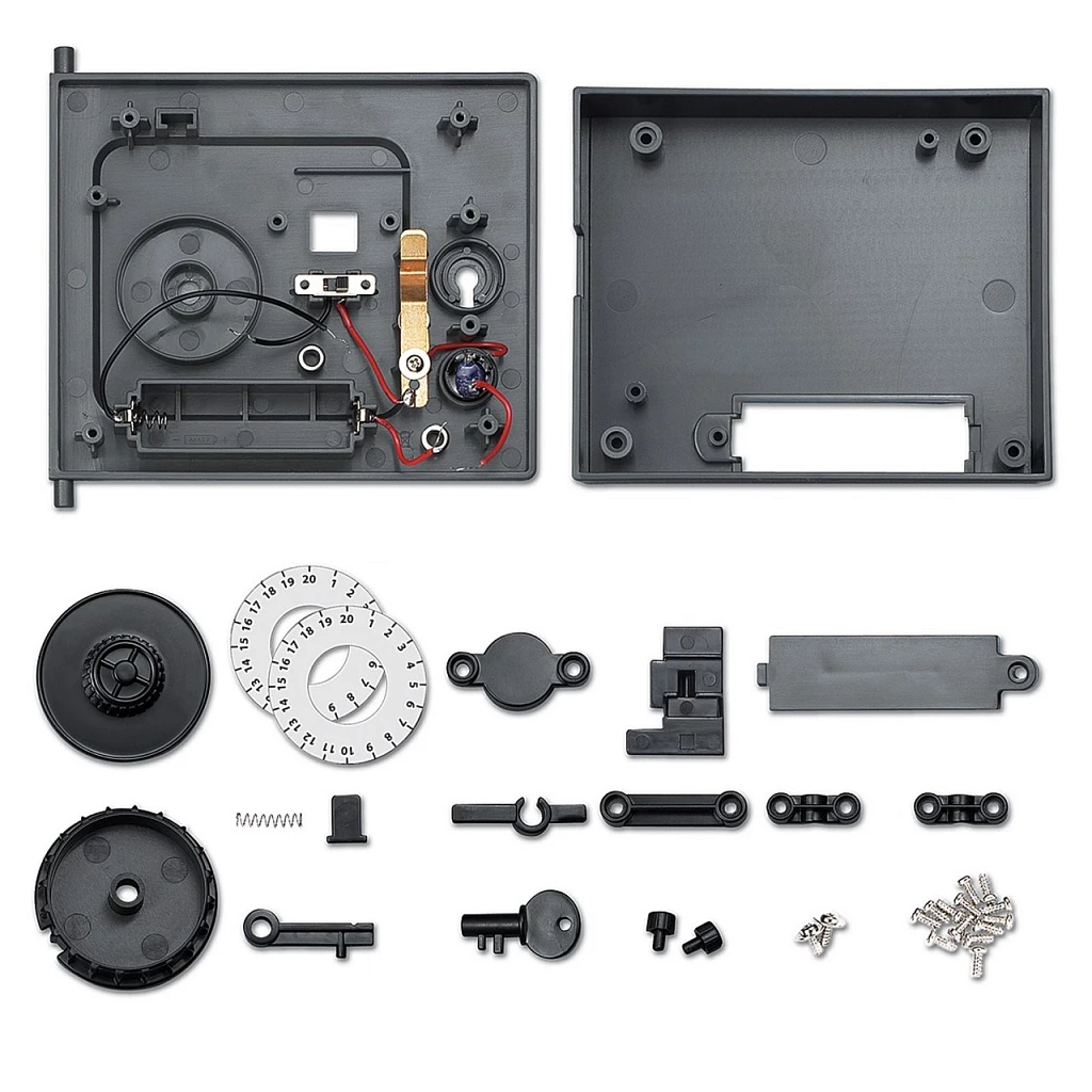 Тепер у вашої дитини з'явиться можливість зберігати свої дорогоцінні речі під захистом. Цей набір дозволить йому власноруч змайструвати надійний сейф з кодовим замком, ключем і звуковою сигналізацією. В комплекті є вся необхідна інформація про збірку сейфа і його використанні. Кожна дитина буде вражена такому подарунку. А збірка сейфа добре допоможе розвинути моторику рук, кмітливість, логіку та навички конструювання.