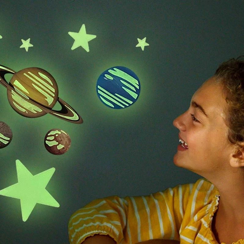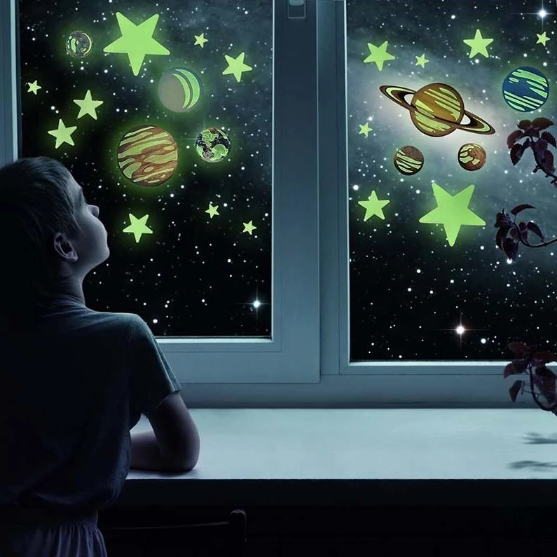 Блискучі в темряві наліпки сподобаються всім дітям. Вони можуть ними прикрасити стелю або стіни в кімнаті.