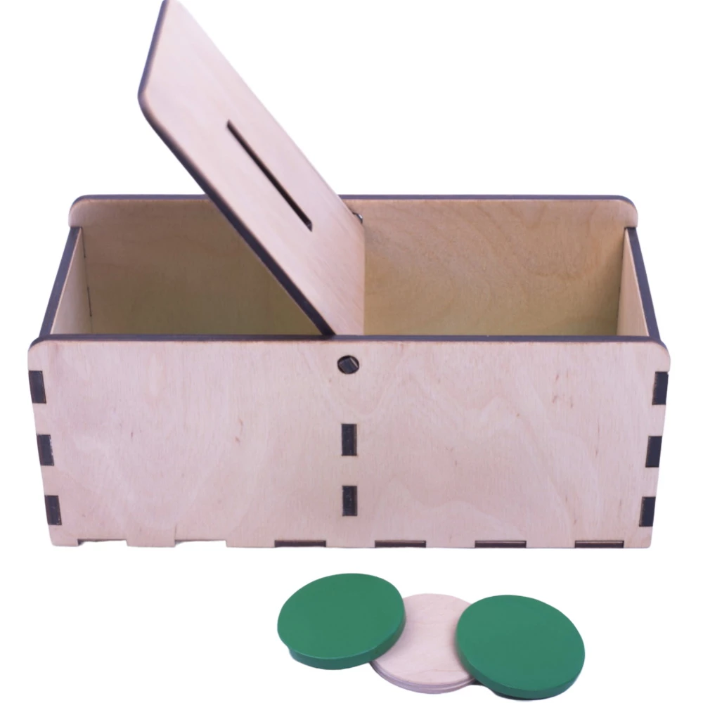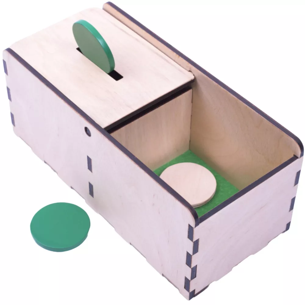 Коробочка з відкидною кришкою і монетою Монтессорі