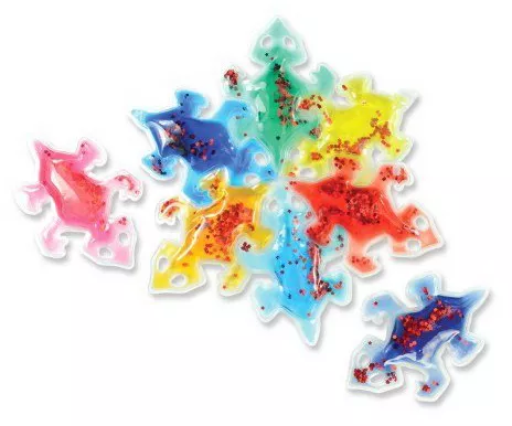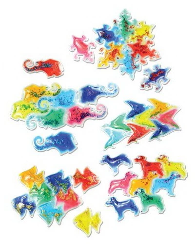 Ці м'які, блискучі форми тварин представлені в 8 різних кольорах. Зображені тварини включають слонів, собак, птахів, риб і ящірок. Розвивайте навички математики, змішування кольорів і шаблонів! Відмінна настільна гра.