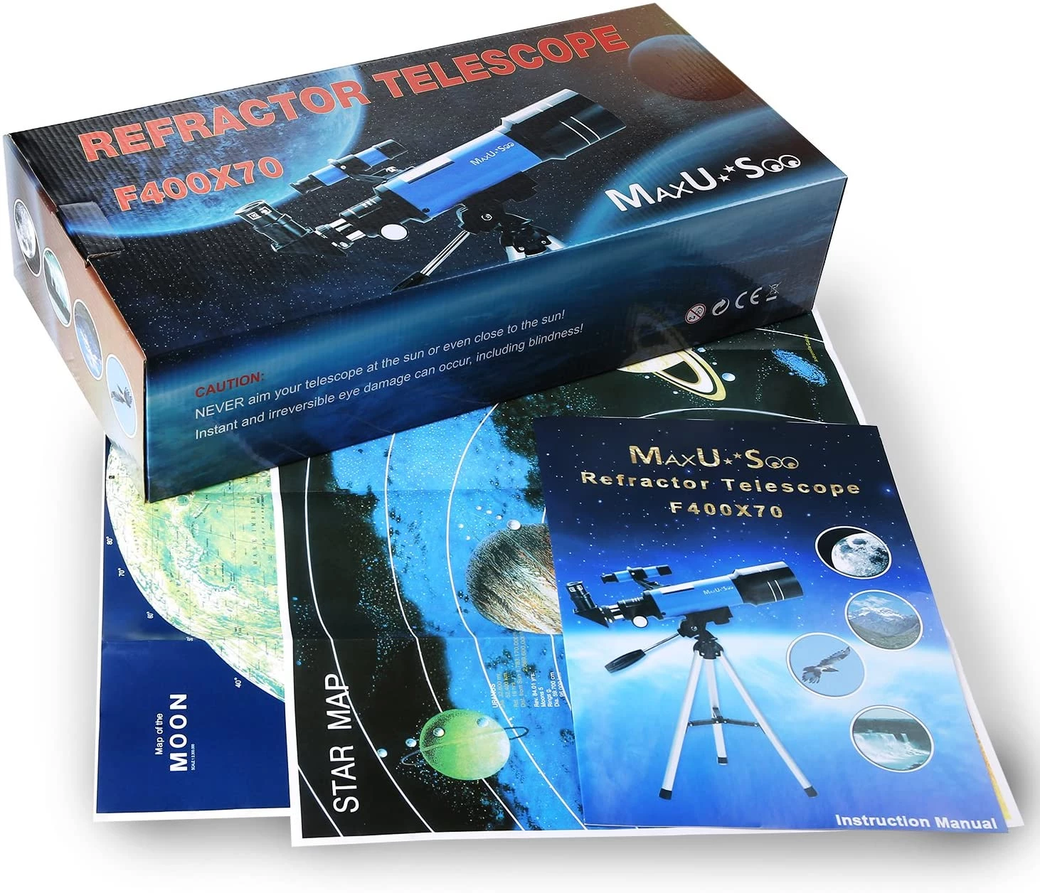 MaxUSee 70mm Refractor Telescope with Tripod & Finder Scope