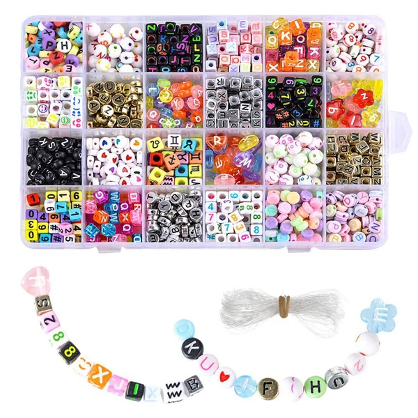Цей розширений набір містить ще більше варіантів для прикрашання: 1400 намистин різного розміру, кольору та фактури, зокрема бісер і намистини з буквами. Усе упаковано в зручну коробочку з секціями.